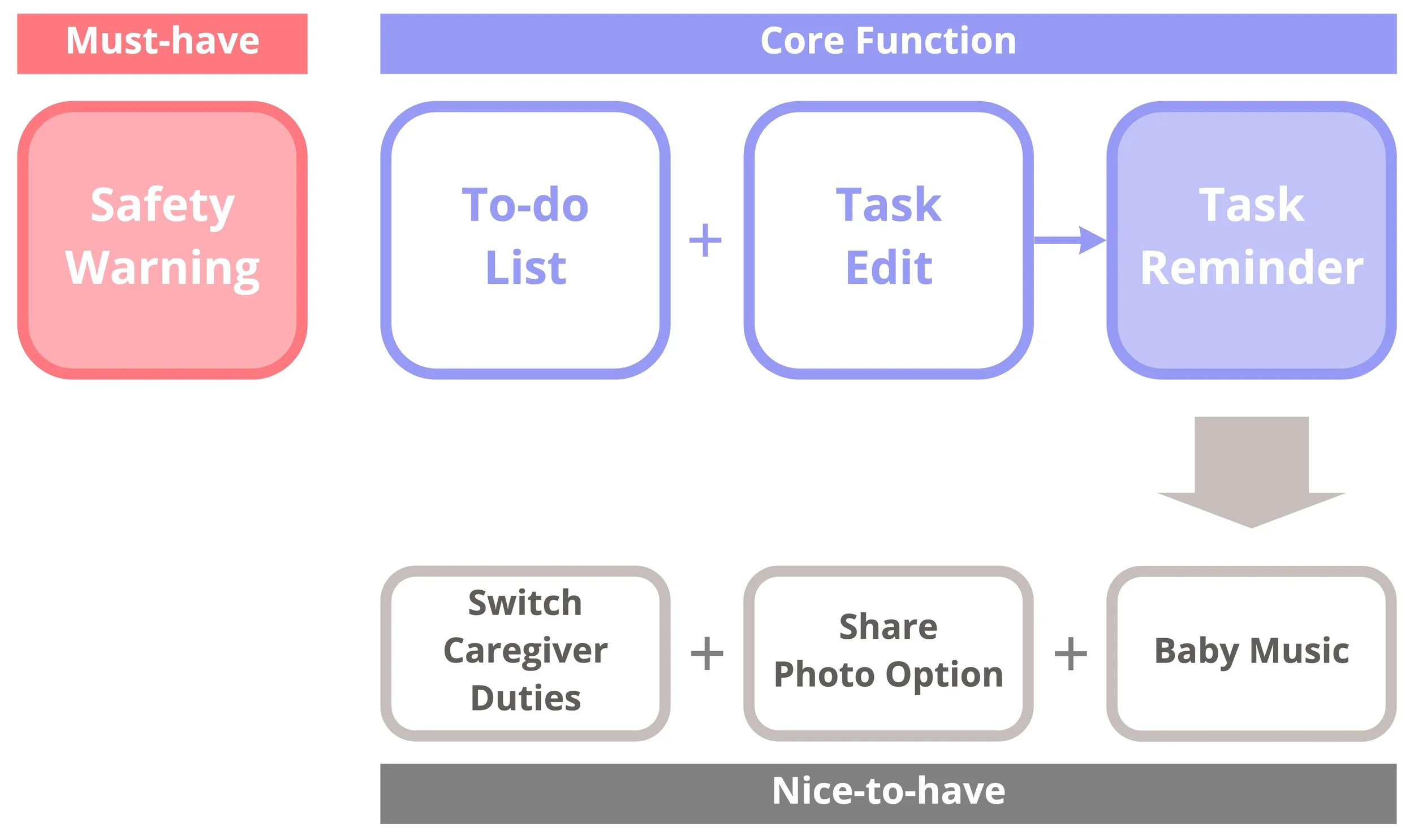 Our test subjects echoed strongly towards our two core concepts: “simple-to-use” and “focus time” – they believed that WOBY could fulfill their needs. However, they also mentioned that they doubted whether the babies’ to-do tasks can be timed (“You know, their mood swings.”)