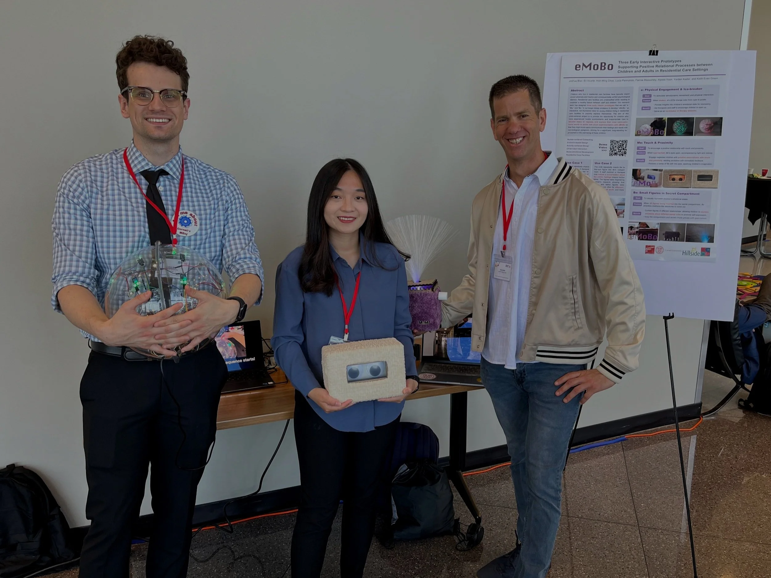 In June 2023, we demonstrated eMoBo in the 22nd Annual ACM Interaction Design and Children (IDC) Conference in Chicago, IL. Our team, directed by PI Dr. Keith Evan Green and Dr. Yarden Kedar, developed all three prototypes in the Architectural Robotics Lab at Cornell University. This project was funded by Cornell’s Residential Child Card Project (RCCP) and collaborated with Hillside Residential Center.