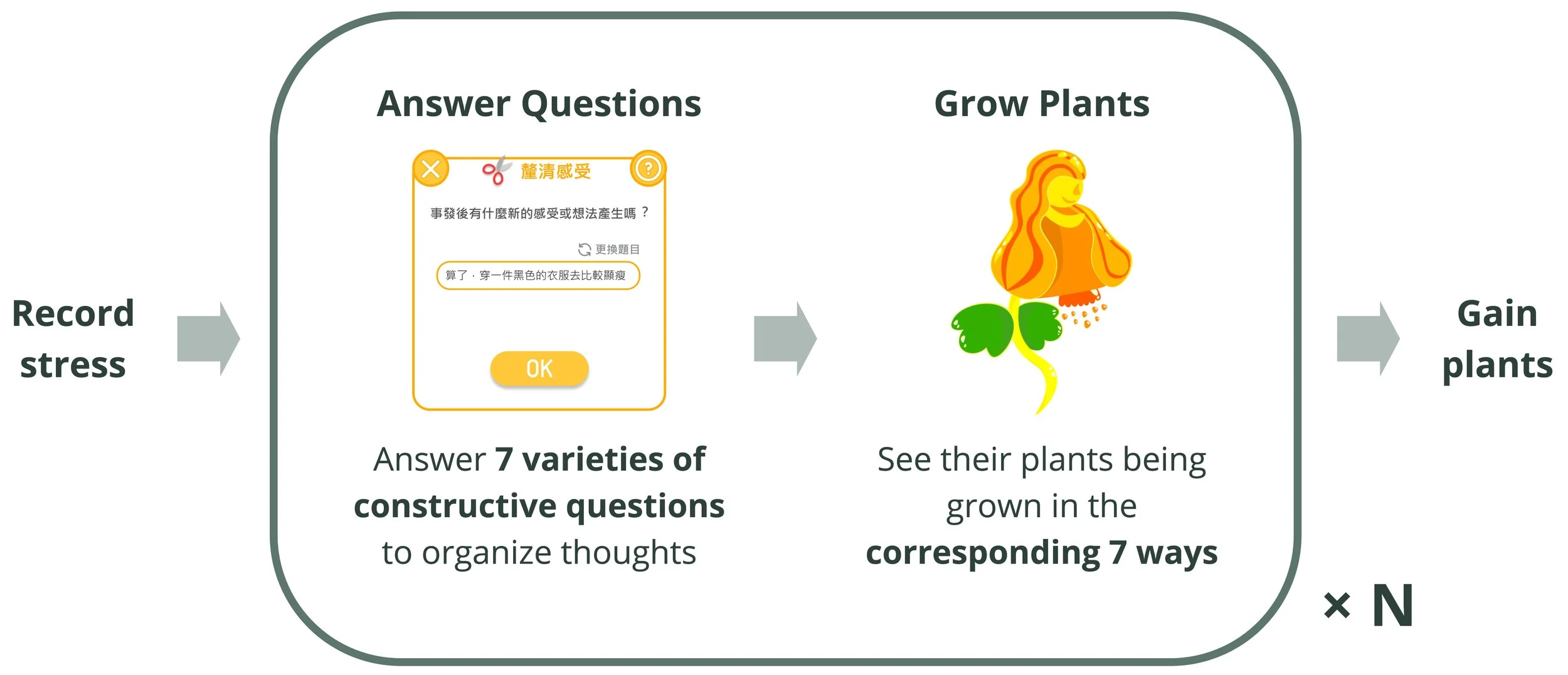 With the constructive-thinking function and visible gardening experience, we hope to give users a multi-perspective guide on how to re-examine their mental issues, along with figuring out what their feelings towards it and what the root causes are. Taking it a step further, we want to help them strengthen their resilience to stress, making way for a life filled with physical and mental wellness.
