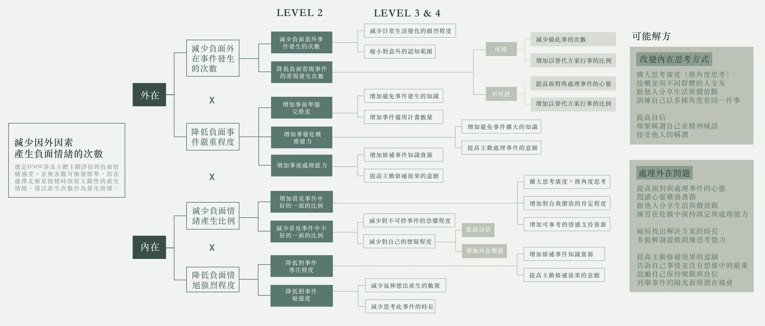 Moreover, according to our in-depth interviews of six young adults (aged from 19 to 23) and MECE analysis, we found that multi-perspective thinking (or simply changing the original way of thinking) is indeed helpful. To go further, in order to come up with different ways of thinking and reduce stress, clarifying the root problems and one’s feelings about them ASAP would be necessary.