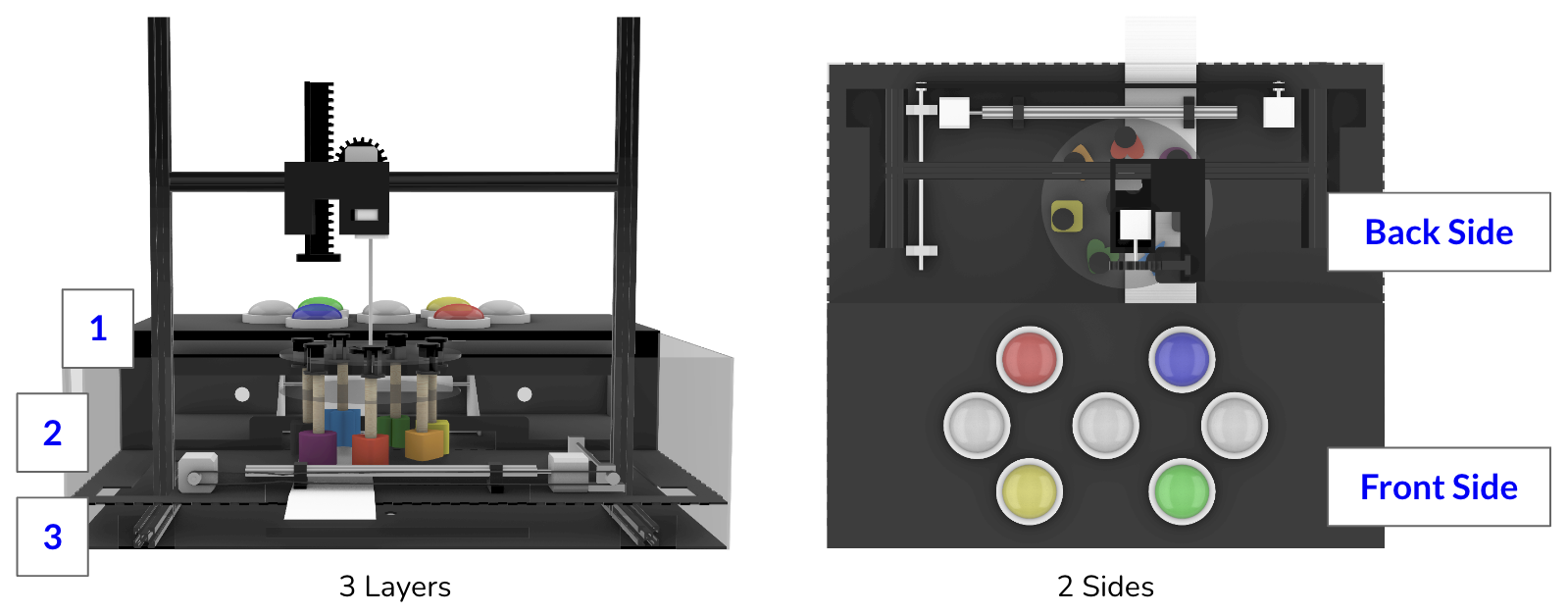 The second paper-rolling system and the color sensor are located on the bottom layer of SpectrumSheet.