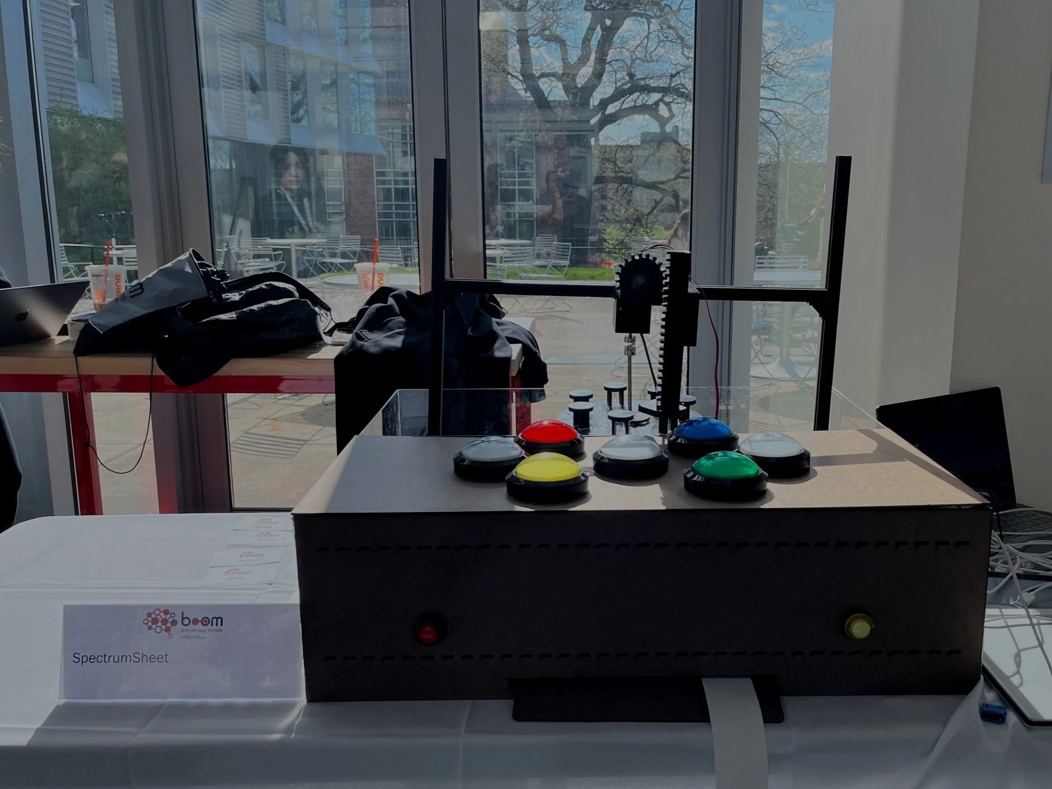 SpectrumSheet is a music reader/player that aims to simplify composition. It boasts seven buttons corresponding to the seven musical notes in the C major scale (CDEFGAB) that light up in different colors. Users can easily compose music by pressing the buttons, the notes will be marked on a sheet by their respective colors, and the sheet can then be reinserted for playback. The machine uses a color sensor to read the music scores and play accordingly, creating an innovative, interactive and user-friendly experience.