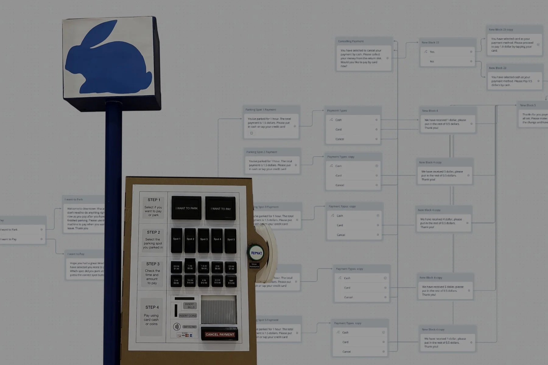 # Personal contribution: team lead, user research, parking meter testing, solution brainstorming, voice interaction content, storyboard story, prototype assembly, prototype testing, video making
