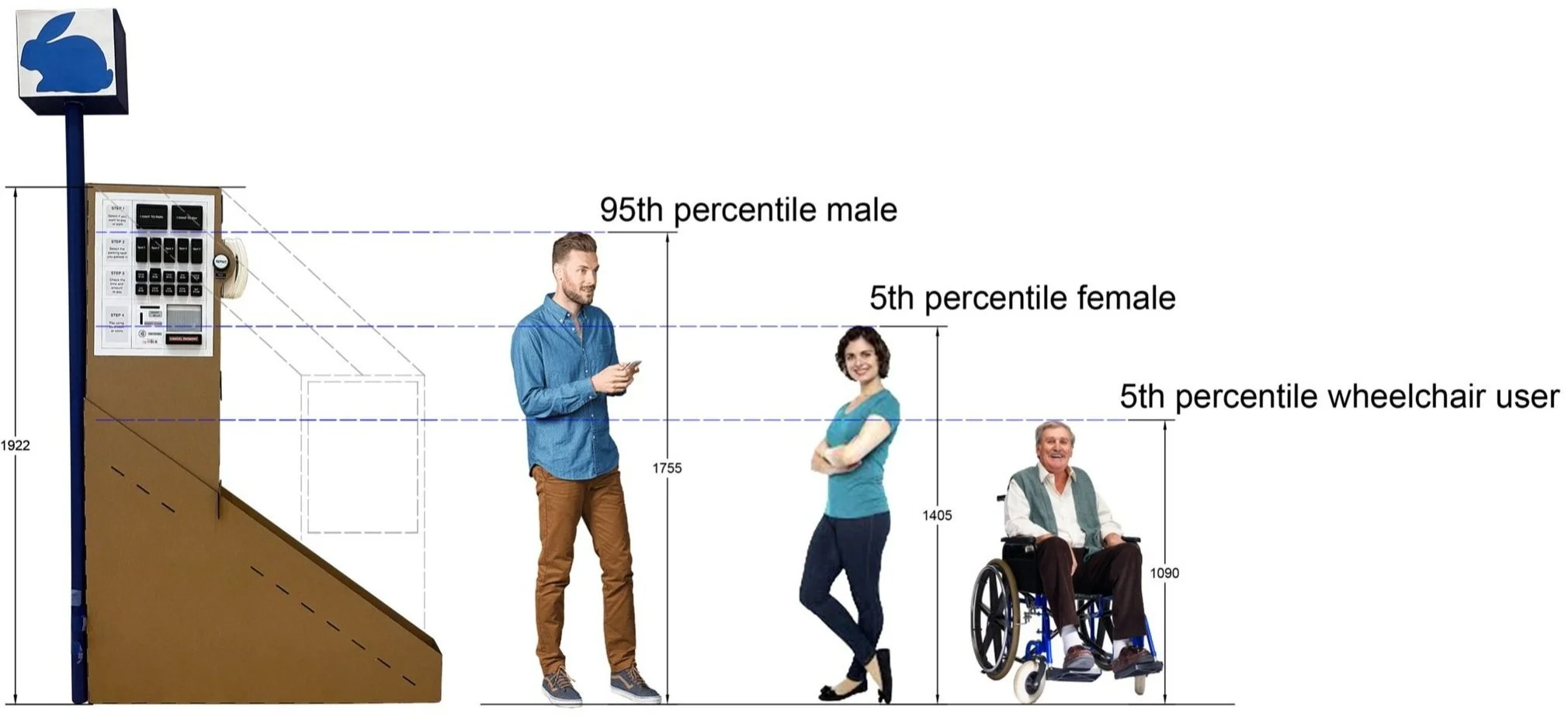 The height of our parking payment stations are adjustable with a single press on the designated button. From the 95th percentile tall males to the 5th percentile short wheelchair users, this machine is available to everyone.