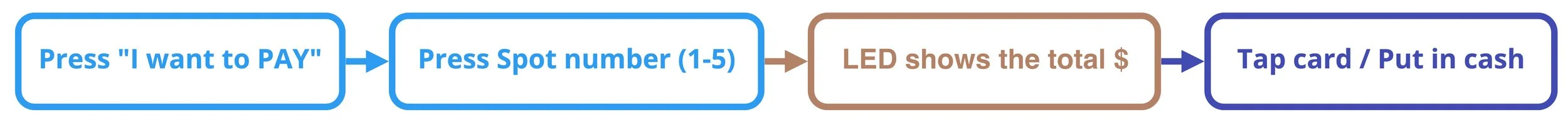 We put forward this simple parking payment station. It comes with sensors, thus it automatically starts the timer when it senses a car parked on its spot, and communicates with voice and LED display. The only thing drivers need to do is to PAY — with cards or cash!