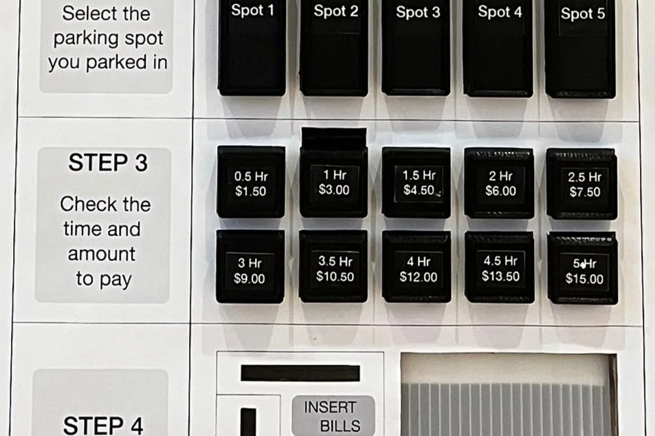 After pressing the button for the spot you parked in, the machine would automatically add up the total payment and light it up via LED – no need to do any math by yourself.